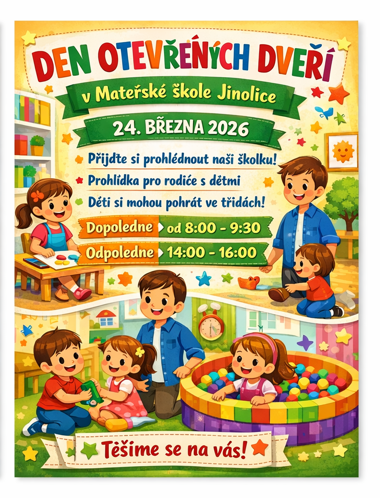 🌼 DEN OTEVŘENÝCH DVEŘÍ A ZÁPIS DO MATEŘSKÉ ŠKOLY JINOLICE 🌼